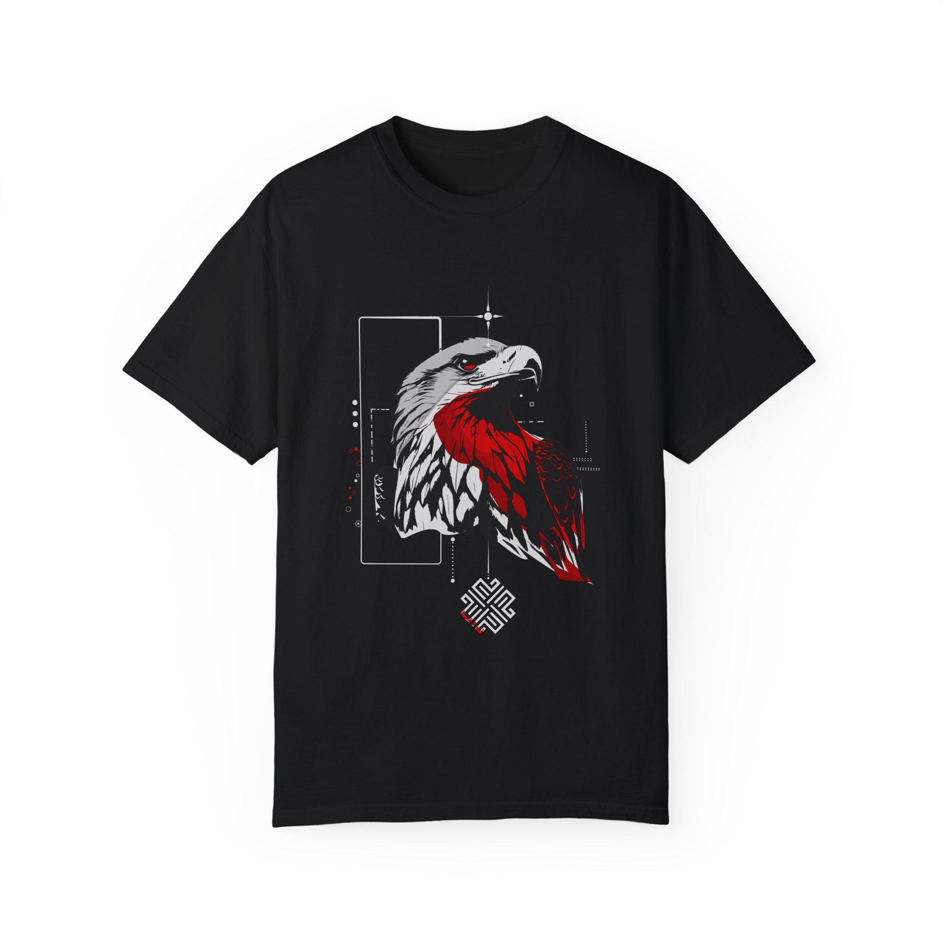 Unleash your inner strength with the "Bold Eagle Graphic Tee"! This unisex garment-dyed T-shirt showcases a striking eagle design, symbolizing power, freedom, and courage. The vivid red and white accents against the black fabric create a bold and dynamic look, perfect for making a statement. Whether you're out on an adventure or adding an edgy vibe to your casual wear, this tee is your go-to choice.