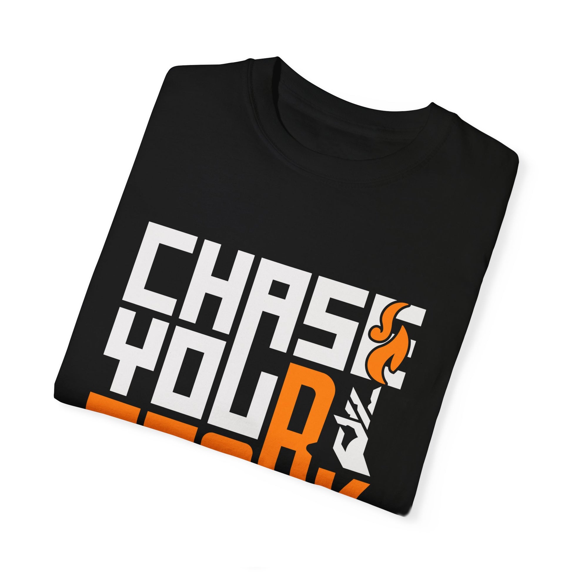 The Chase Your Spark Tee is designed for those who are driven by ambition and fueled by passion. Featuring a bold, block-style typography with an orange flame icon, this unisex T-shirt is the perfect reminder to keep pushing forward and stay inspired.