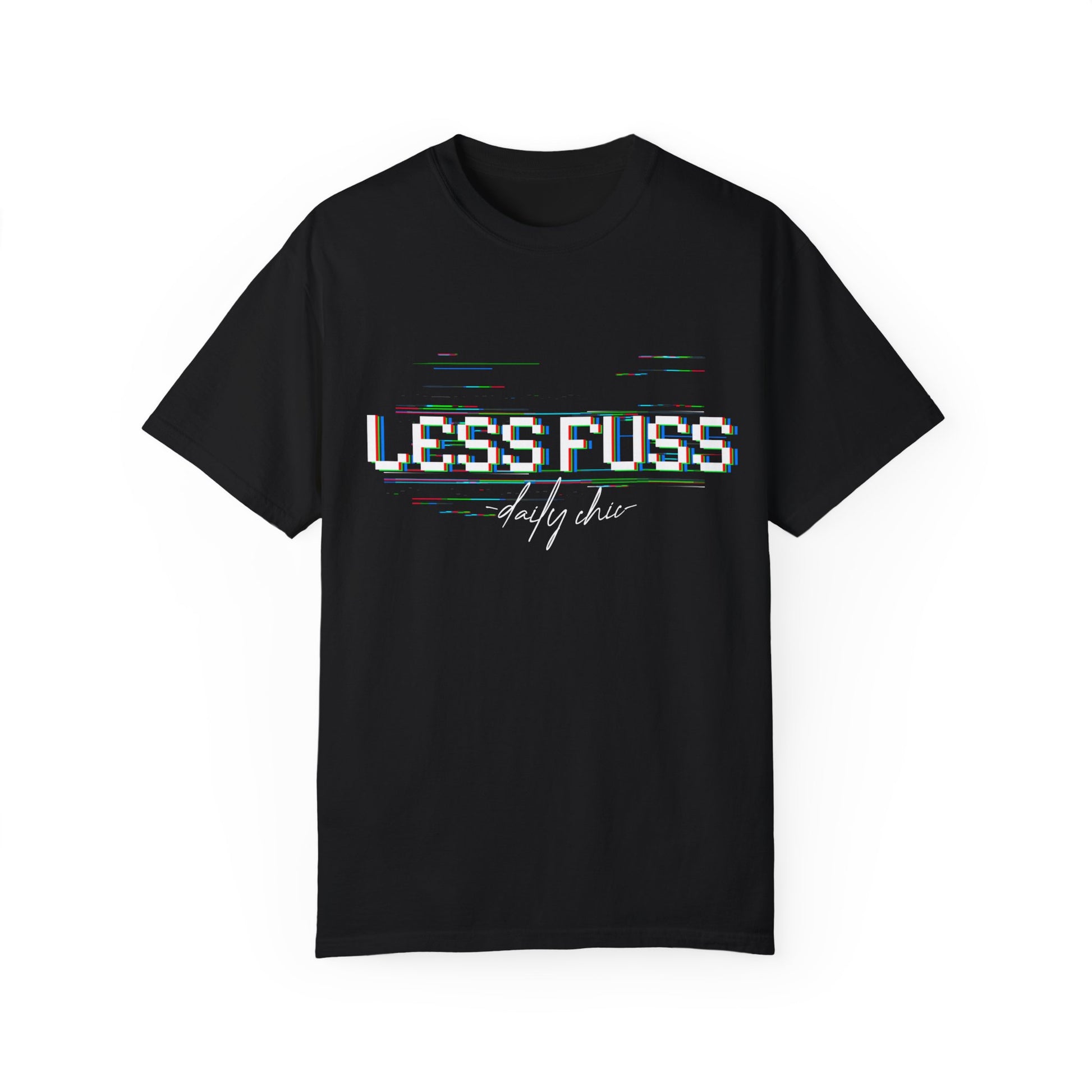 "Less Fuss Tee – Minimalist Streetwear with a Digital Glitch Effect!"