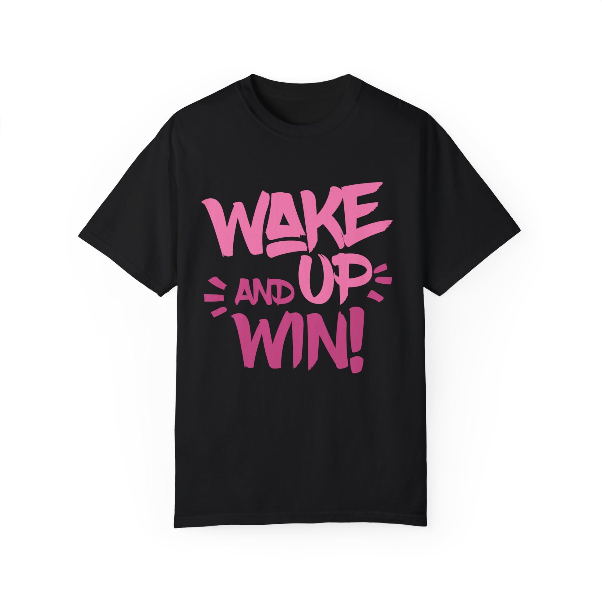 The Wake Up and Win Tee is designed for go-getters who believe in starting the day with purpose. Featuring bold, graffiti-style pink typography, this unisex T-shirt is a statement piece that radiates energy, confidence, and motivation.